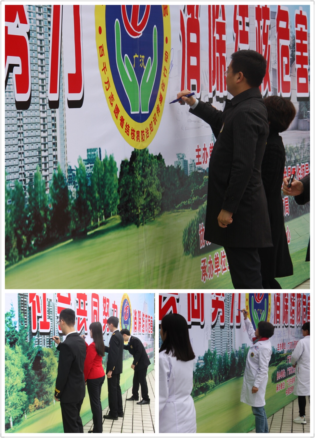 广汉市委常委、市政府副市长颜宏霖,中国民用航空飞行学院总飞行师徐建民出席了当天的宣传活动并发表讲话。同时出席的还有广汉市卫生和计划生育局党委书记、局长黄海鹰,中国民用航空飞行学院医院院长赵越兴,广汉市科学技术协会主席李志刚等,以及相关机构、志愿者代表近500人。
