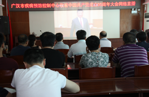 当接到上级关于收看中国共产党成立95周年、习近平总书记在庆祝大会上发表讲话的通知后,于7月1日上午9点40分,中心党支部立即组织疾控中心全体干部职工在中心四楼会议室集体收看,上了一次真正的党课,进一步激励鼓舞了干部职工及广大共产党员,坚定信心、振奋精神,开拓进取,奋发有为,为国家实现全面推进小康和两个百年目标而发出自己的光和热。十点整,当庄严的国歌在人民大会堂响起,仿佛让我们的每个干部职工的热血沸腾了,心情激荡,习近平总书记那庄严的话语久久回荡耳边,中国共产党波澜壮阔的九十五周年,谱写了一曲曲绚丽的乐章。做好自己,有担当,不忘初心,继续前进,忠诚党章,忠诚党徽,总结历史经验,把握历史规律,理论上清醒,政治上才坚定,,坚定道路、理论、制度、文化自信,等等经典话语,是我们做好“两学一做”学习教育工作的强大理论武器,我们承诺:立足本职岗位,做好自己,有担当,当好疾控战线排头兵,为广汉市的健康发展做出自己应有的贡献。