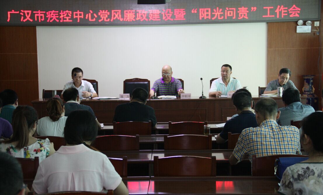 2016年8月22日下午,广汉市疾病预防控制中心在中心四楼会议室组织全体干部职工参加的党风廉政建设暨“阳光问责”工作会,大会由中心主任钟朝坤同志主持,中心支部书记刘小波同志传达学习了市卫生和计划生育局、广汉市委及德阳市委等关于党风廉政建设和“阳光问责”的文件,将文件精神传达到中心每个干部职工,做到牢固树立底线意识,在思想上明辨违规吃请和公款吃喝的底线;防线意识,认真学习省、市纪委关于党风廉政建设和“阳光问责”的文件,增强节俭意识,筑牢思想防线;纪律意识,对有令不行、有禁不止、顶风违纪的,严肃查处确保专项整治工作落实到位;责任意识,进一步强化各级责任。中心主任钟朝坤同志最后强调:要结合“两学一做”学习教育,重在抓落实,并提了六点要求,期望中心每个干部职工“日清、日勤、日慎”以及“慎初、慎微、慎独”。
