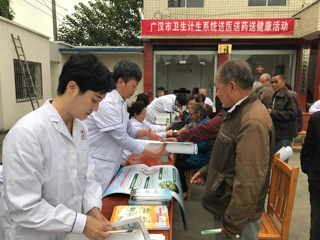 2016年10月9日,正值“重阳节”,广汉市疾病预防控制中心专业人员来到广汉市小汉镇贫困村“凤凰村”参加广汉市卫生系统组织的送医送药送健康活动。本次活动以“帮扶贫困村民、关爱老年人为主题”,采用义诊、咨询、健康知识讲解、义检等形式对“凤凰村”村民进行健康咨询服务活动。对前来咨询的老年村民放发了健康管理小工具和小礼品,同时对村民提出的健康问题进行了一一讲解,受到了村民们的一致好评。