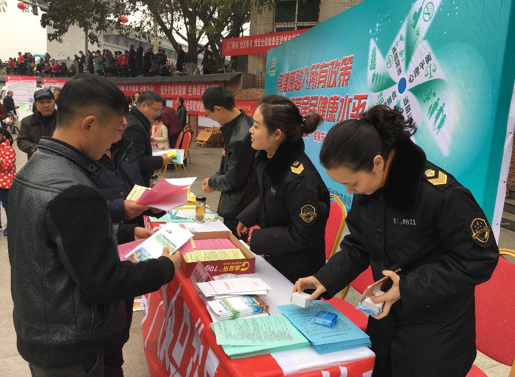 2017年2月12日是一年一度的广汉“保保节”, 为大力宣传我市创建健康促进县活动,利用广汉 “保保节”人流量大、影响范围广的特点,在广汉市人民政府创建健康促进县领导小组办公室的统一组织下,广汉市卫生和计划生育局、经信局、教育局、食药监局、城管局、疾控中心及市级医疗卫生单位等10个单位和部门在金雁广场举办跨部门大型宣传活动。广汉市卫生和计划生育局局长黄海鹰及相关部门领导到现场指导了本次宣传活动。