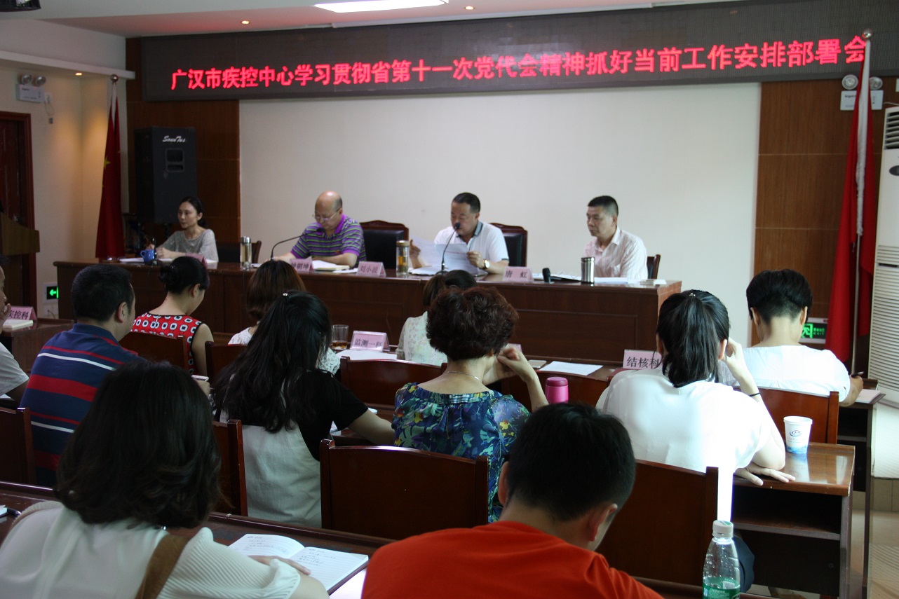 为认真贯彻落实市卫生计生局关于学习贯彻省第十一次党代会有关会议文件精神,2017年6月19日上午市疾控中心召开中心班子和支委扩大会,学习传达了市卫生计生局6月16日学习贯彻省第十一次党代会精神抓好当前工作安排部署会精神,统一了思想,提高认识,成立了学习贯彻省第十一次党代会精神领导小组及办公室,制定了中心的学习贯彻省第十一次党代会精神工作方案,加强了组织领导和督促检查指导力度。6月20日,又召开了中心全体干部职工大会,把学习贯彻省第十一次党代会精神传达到中心每个干部职工当中,中心主任钟朝坤同志结合党代会精神实质,就中心下阶段的工作进行详细部署,并强调党员同志要认真学习会议精神,率先垂范,以会议丰富内涵作为自己的行动指南,统一思想,提高认识,牢记使命,严格作风,强化服务意识,扎实推进全国健康促进县创建工作,疾病防控工作稳步健康发展,办实事、重实际、求实效,勇于担当,充分发挥共产党员的先锋模范作用。为营造学习宣传省第十一次党代会精神氛围,还张贴了2条宣传横幅和3个宣传专栏,电子显示屏不间断滚动播放贯彻落实党代会精神的宣传标语等。通过认真学习王东明书记在四川省第十一次党代会上的报告及相关会议精神,中心每一个干部党员认真撰写了学习心得体会文章,进一步统一思想提高了认识,把思想认识转化为切实行动,为推进疾病防控工作奠定了基础。