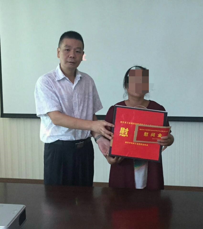 受到慰问的感染者之一肖XX,广汉市南兴镇人,2008年因肺部严重感染住院治疗时查出感染艾滋病毒,肖XX当时病情危重,后经抢救治疗后病情有所缓解,但并发症救治费用使家庭不堪重负,陷入贫困,属于广汉市建档立卡的贫困户家庭。