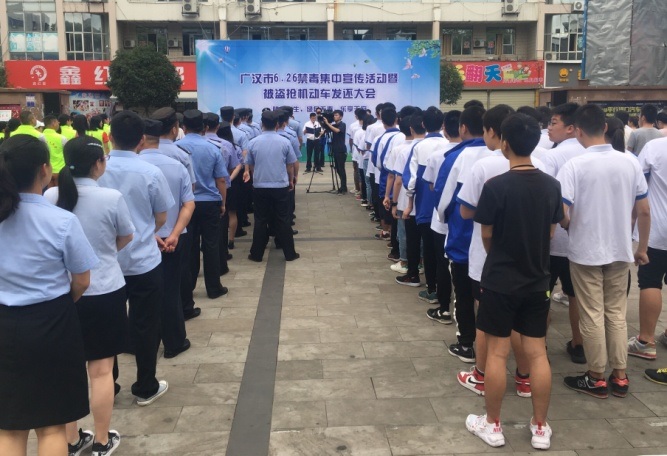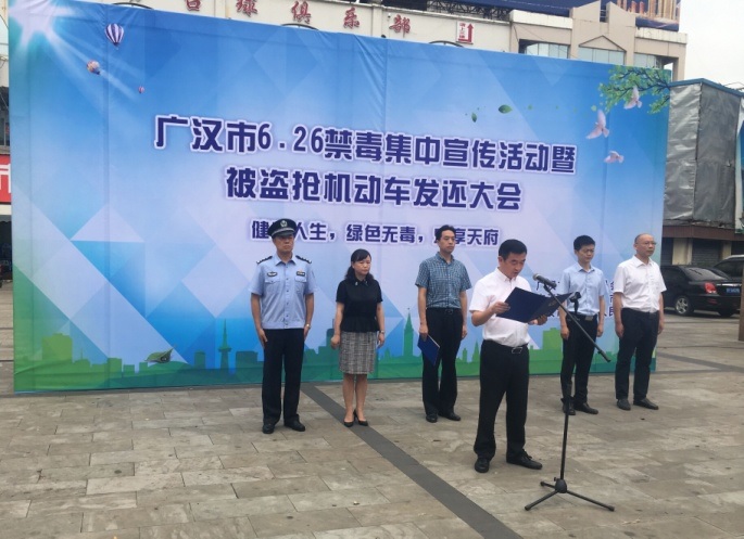 珍爱生命,拒绝毒品。6月26日上午在雒城镇北新广场,广汉市疾病预防控制中心社区药物维持治疗门诊参与广汉市禁毒委主办,市禁毒办、公安局承办的“广汉市6.26禁毒集中宣传活动暨被盗抢机动车发还大会”,广汉市委常委、政法委书记张崇敏,广汉市副市长、公安局局长张良出席大会,广汉市司法局、雒城镇政府、文体局、教育局等各市局单位参与禁毒活动宣传。
