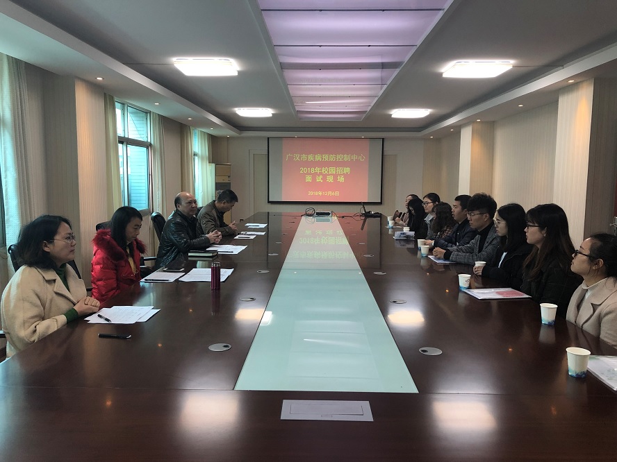 根据《广汉市人力资源和社会保障局、广汉市卫生和计划生育局关于2018年卫计系统事业单位面向高校招聘工作人员的公告》要求,2018年12月6日下午,广汉市疾病预防控制中心举行2018年校园招聘应聘者面试工作。