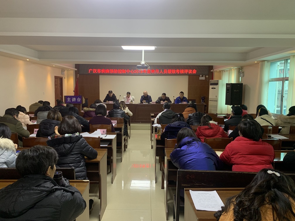 为加强中心编外聘用人员管理,根据《广汉市疾病预防控制中心编外聘用人员管理办法(试行)》规定,市疾控中心于2019年1月16日下午,召开了2018年度编外聘用人员考核评议会。会议由疾控中心主任钟朝坤主持,全体干部职工参加了会议。