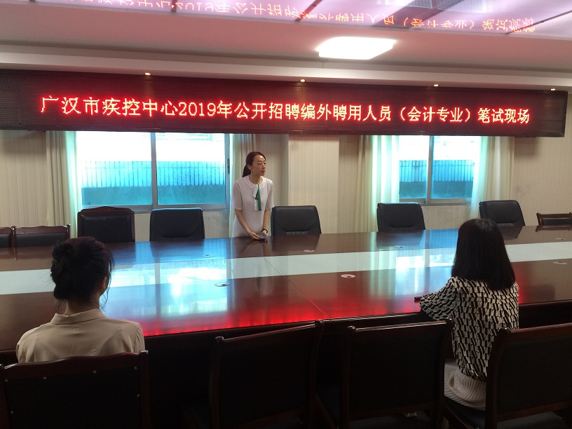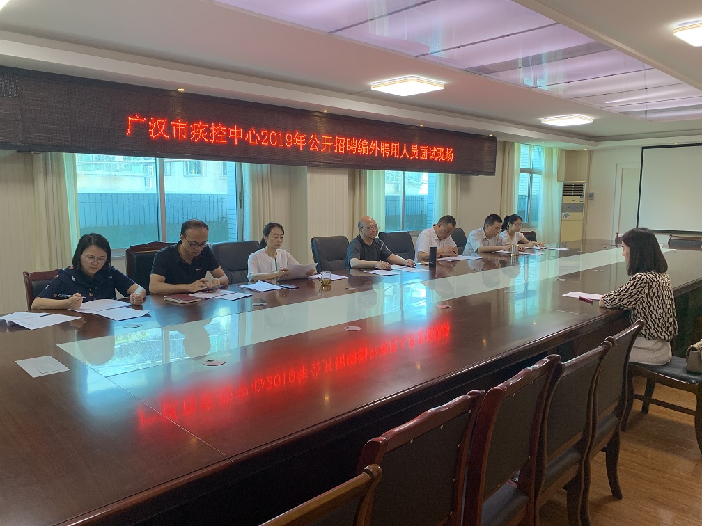 根据《广汉市卫生健康系统2019年第二次公开招聘事业单位编外聘用人员公告》要求,为进一步规范招聘程序,达到公平、公开、公正的目的,中心制定印发了《公开招聘编外聘用人员工作实施方案》,成立了以中心主任钟朝坤为组长、书记刘小波为副组长、中心副主任及2名副高级职称业务骨干为成员的考聘专家组。通过前期报名和资格审查,6月5日,在中心三楼会议室开展了考核考察工作。