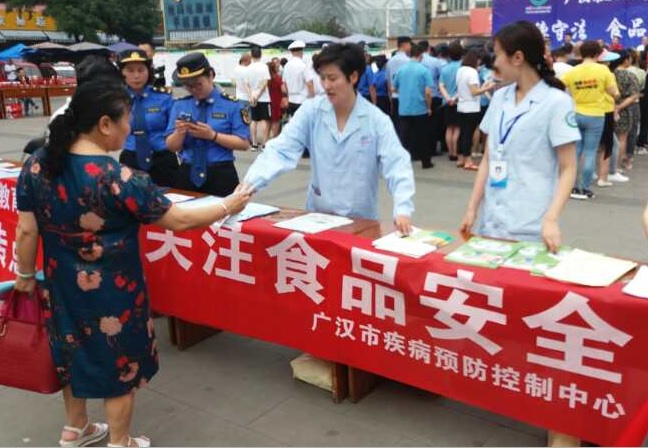 6月20日上午, 市食安办,联合雒城镇政府、市卫健局、市市场监督管理局、市疾控中心、市社区卫生服务中心在市喷泉广场开展广汉市“食品安全宣传周”主题宣传活动,通过横幅、展板、发放宣传资料、现场咨询的形式,接受群众咨询,宣传食品安全知识。