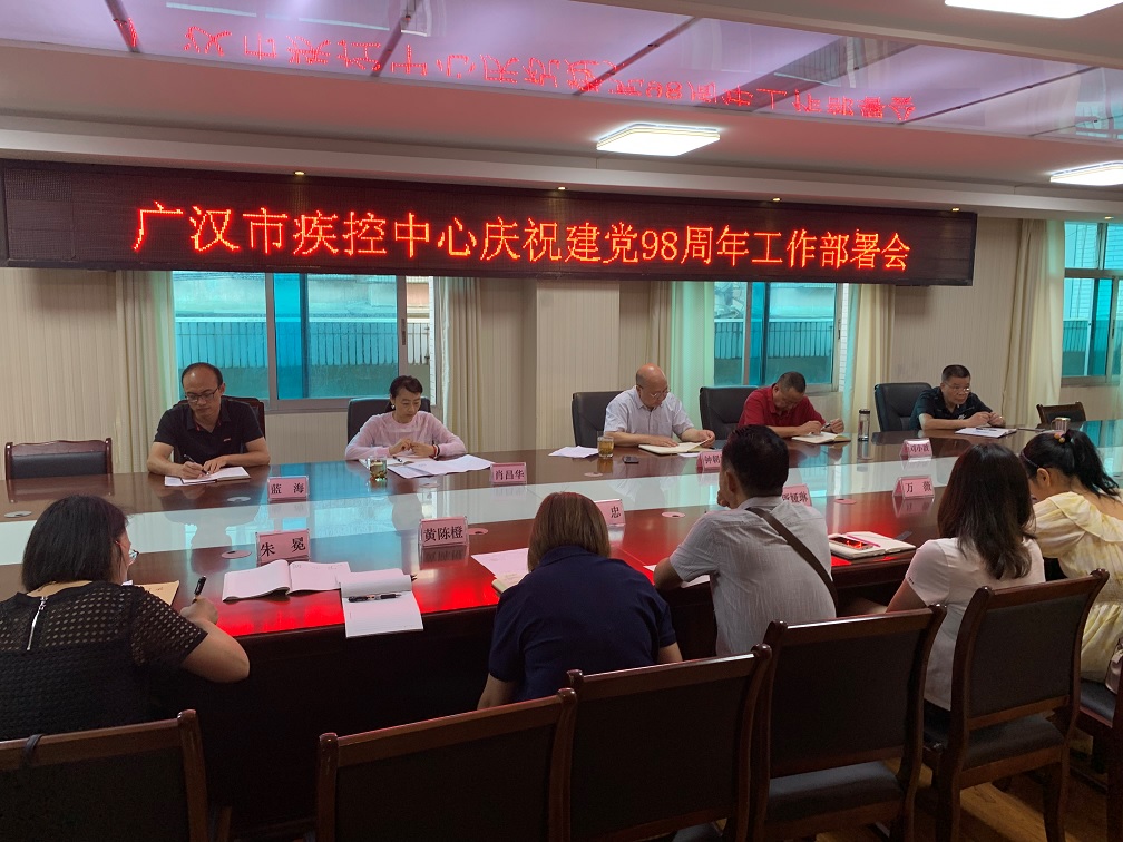 中心高度重视建党98周年庆祝活动,6月24日上午中心召开庆祝建党98周年工作部署会,会上中心主任钟朝坤要求全体党员干部广泛参与系列庆祝活动,大力弘扬党的优良传统和作风,充分展示市疾控中心党员干部良好的精神风貌,促使广大党员干部以更加饱满的热情、更加昂扬的斗志、更加务实的作风,立足岗位,扎实工作,为疾病预防控制工作提供坚强组织保障。