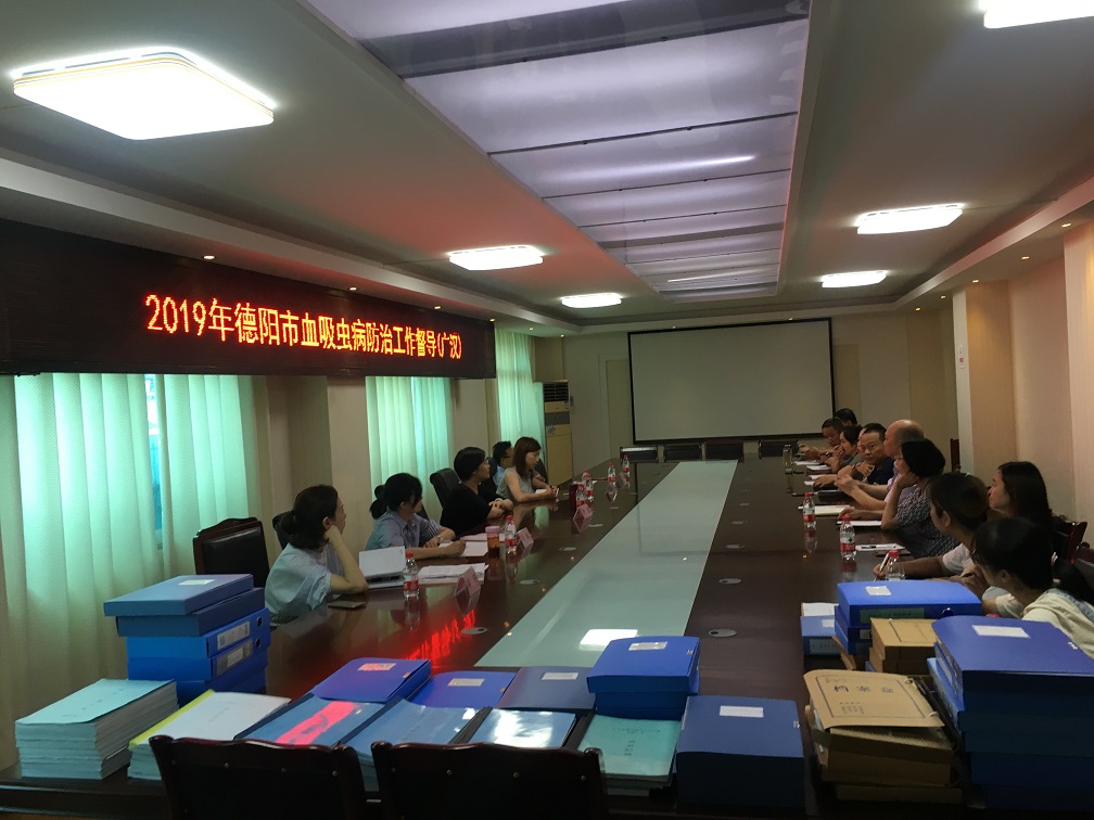 督导组首先听取了广汉市疾控中心主任钟朝坤就我市2019年血吸虫病防治工作开展情况及2015-2019年血吸虫病消除达标进展情况的汇报,然后实地检查了连山镇卫生院发热病人风险监测开展情况,并对我市市级有关部门、重点乡镇政府、卫生院2015-2019年血吸虫病防治资料进行查阅。