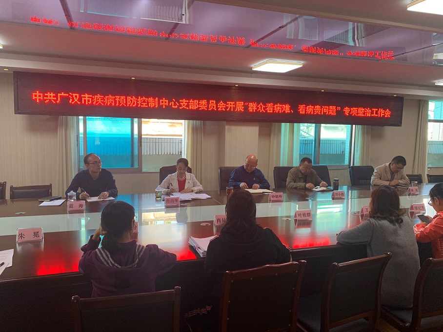 10月11日下午,中共广汉市疾病预防控制中心支部委员会召开“群众看病难、看病贵问题”专项整治工作会,中心党支部书记、委员,相关科室负责人参加了会议。