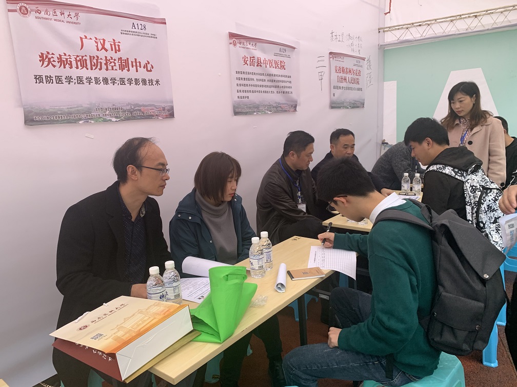 为做好人才储备,多渠道多层次吸纳优秀人才,优化人员结构,构建适合疾控发展的专业技术人才队伍,在广汉市卫生健康局的统一部署下,广汉市疾病预防控制中心组织由班子成员带队的校园招聘团队于2019年11月11日起分别赴西南医科大学、成都医学院、川北医学院三所高校参加2020届毕业生双选会。