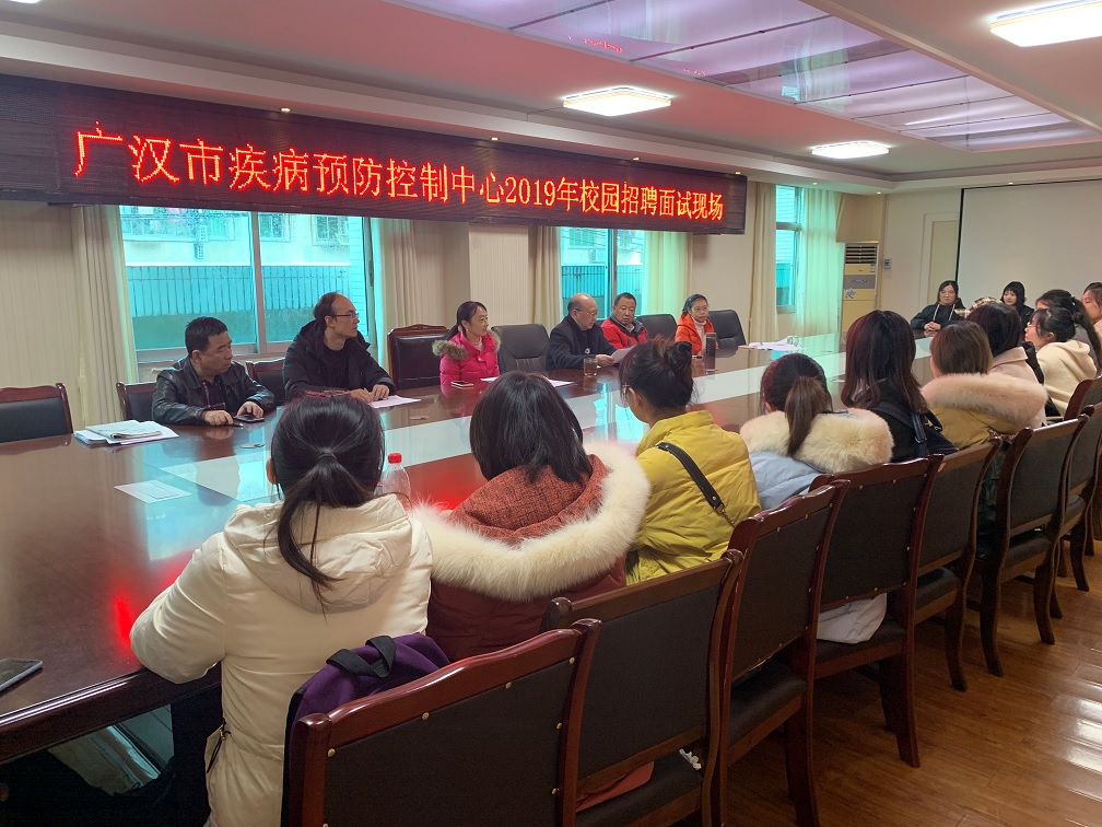 根据《广汉市人力资源和社会保障局 广汉市卫生健康局关于2019年卫健系统事业单位面向高校招聘工作人员的公告》相关规定,广汉市疾病预防控制中心于2019年11月26日开展2019年校园招聘面试工作。