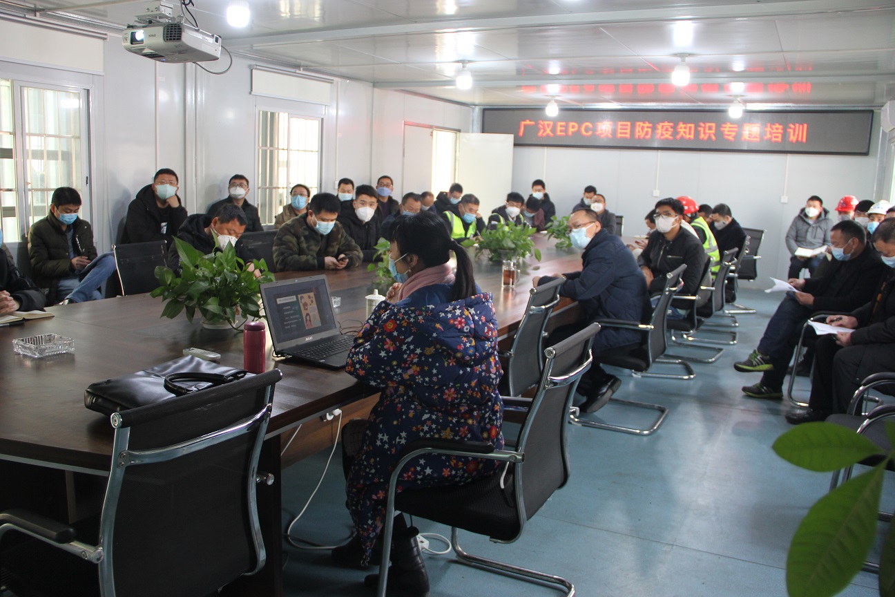 目前正值新冠肺炎防控工作的决胜关键期,为了推动德阳市重点建设项目(广汉市人民医院建设项目、广汉中学建设项目)复工复产,落实重点建设项目工程疫情防控工作措施,2020年2月24日上午,广汉市疾控中心组织人员深入建筑工地,对建筑施工方的10个部门经理和防疫工作人员共计21人开展了现场培训。
