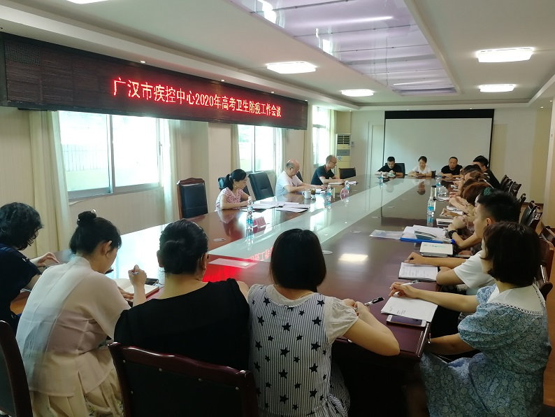 为做好我市高考考点的新冠肺炎防控工作,根据当前新冠肺炎疫情常态化防控形势,按照上级相关文件要求,6月30日,广汉市疾控预防控制中心组织业务骨干召开2020年高考卫生防疫工作会。会上,根据前期制定的《广汉市2020年高考考试新冠肺炎疫情防控工作方案》要求,对相关人员进行了分组;对我市两个考点、考场的准备、人员健康监测与防护、环境卫生消毒、应急处置、疫情防控和公共卫生突发事件应急处置、健康教育等内容进行了培训;对各考点包括入场体温检测、突发异常情况处置在内的全过程进行了模拟演练。要求全体工作人员要熟练掌握突发公共卫生事件应急处置方法和程序。