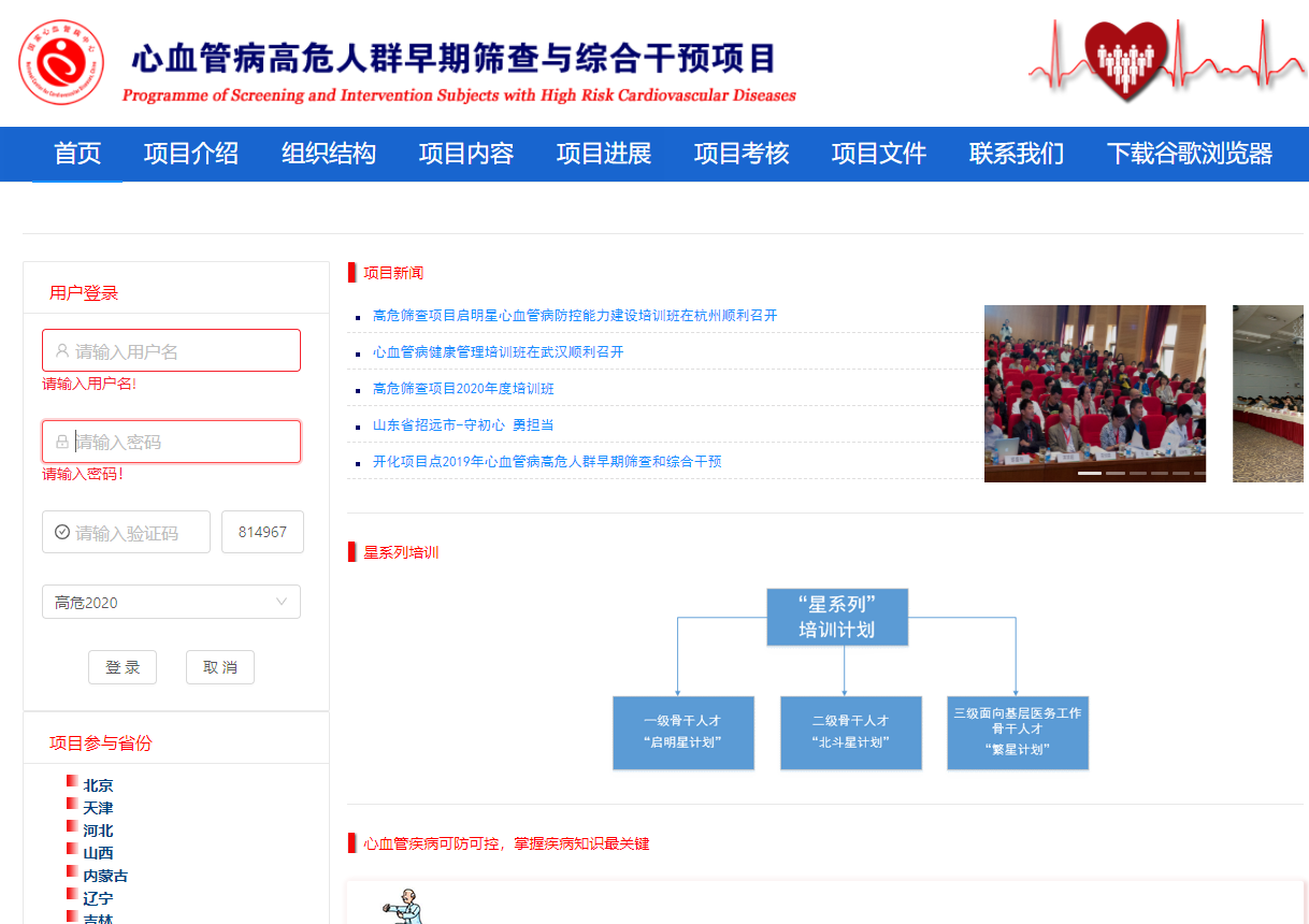 为应对心血管病带来的重大公共卫生威胁,财政部和国家卫生和计划生育委员会(现国家卫生健康委员会)设置“心血管病高危人群早期筛查与综合干预项目”试点专项,这是国家增加医疗卫生投入惠及民生的一项重大举措。
