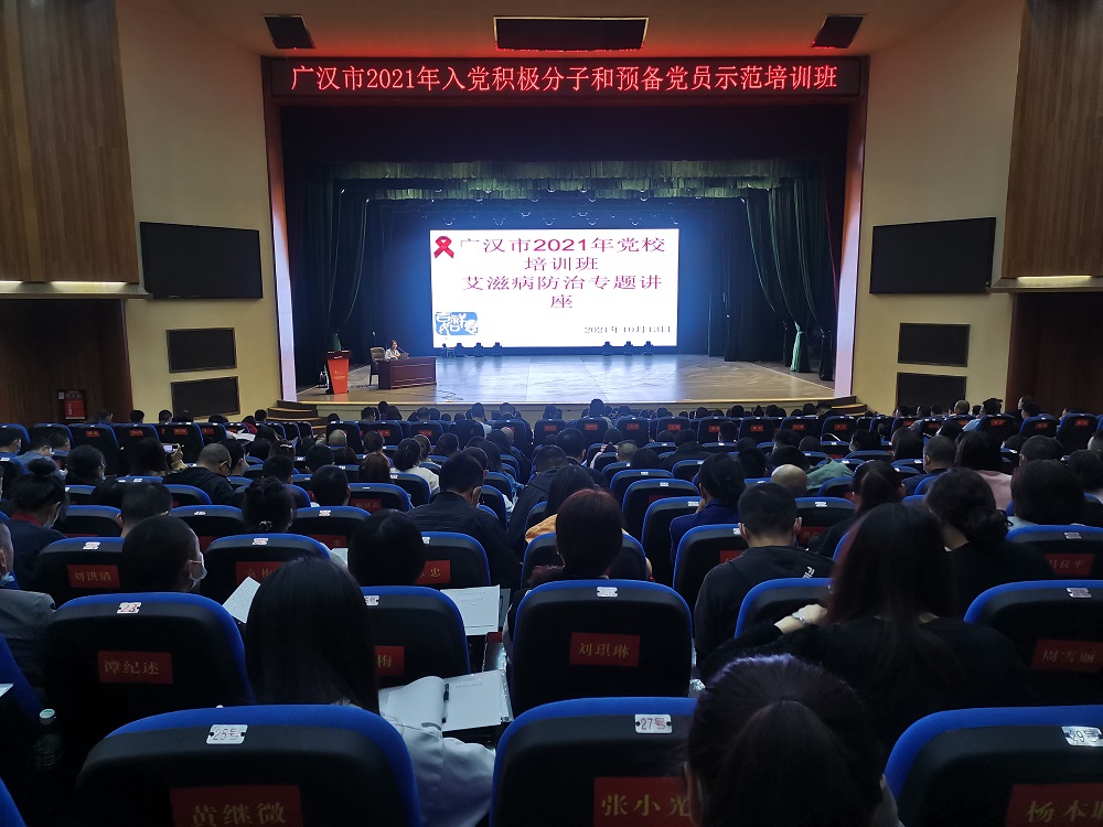2021年10月13日,中共广汉市委党校在广汉市2021入党积极分子和预备党员示范培训班上,安排了艾滋病防治知识专题讲座。广汉市各镇(社区)、部门单位入党积极分子和预备党员200余人参加了此次专题培训。