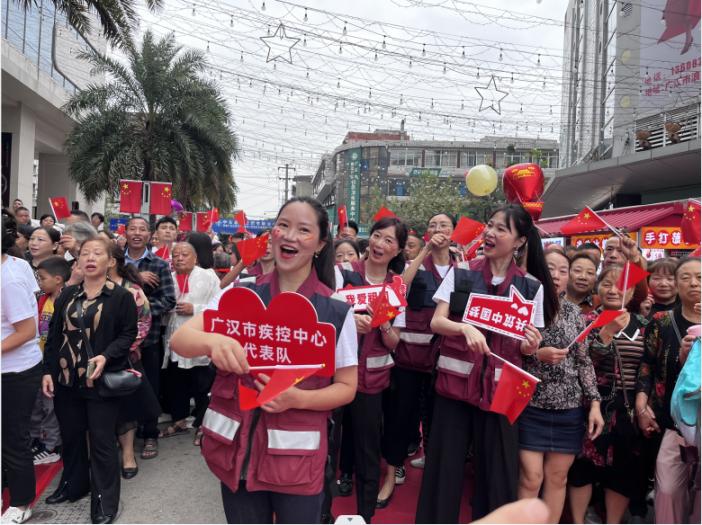 “我和我的祖国,一刻也不能分割......”当现场这熟悉的旋律响起,参加活动的同志们无一不饱含深情,走到人群中间用高亢嘹亮的歌声祝福伟大的祖国生日快乐。能生长在这样强大的国家和这样一个伟大的时代,做为新时代的疾控人,我们倍感骄傲、无比自豪,同时也深知肩上的责任重大,我们用实际行动为保护好广汉人民的健康贡献一份疾控力量。