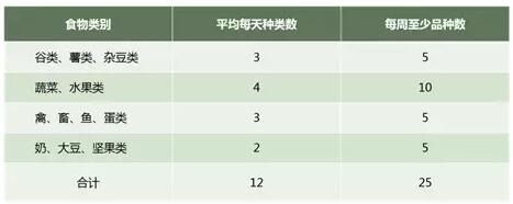 【智慧选择多样化:每天摄入12种、每周摄入25种以上食物】