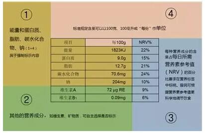 营养成分表中最关键的数值是“NRV%”,即每单位食品中(如每
